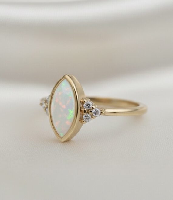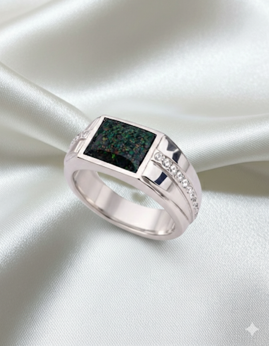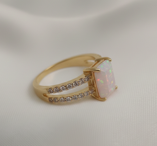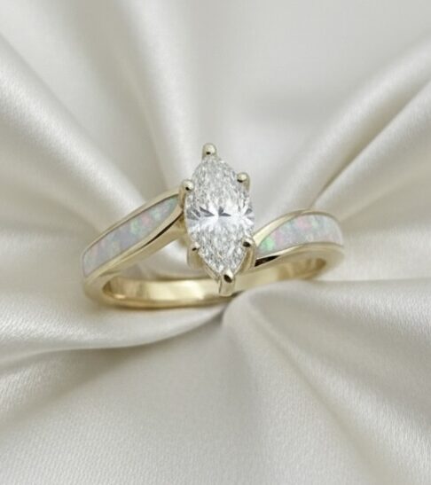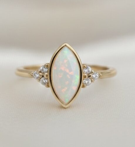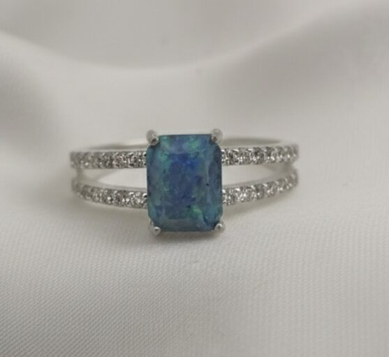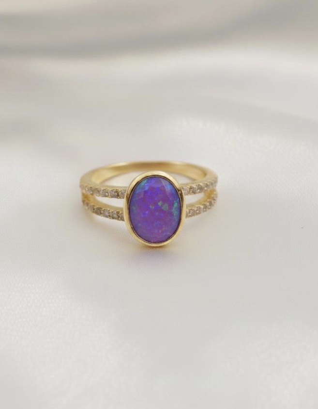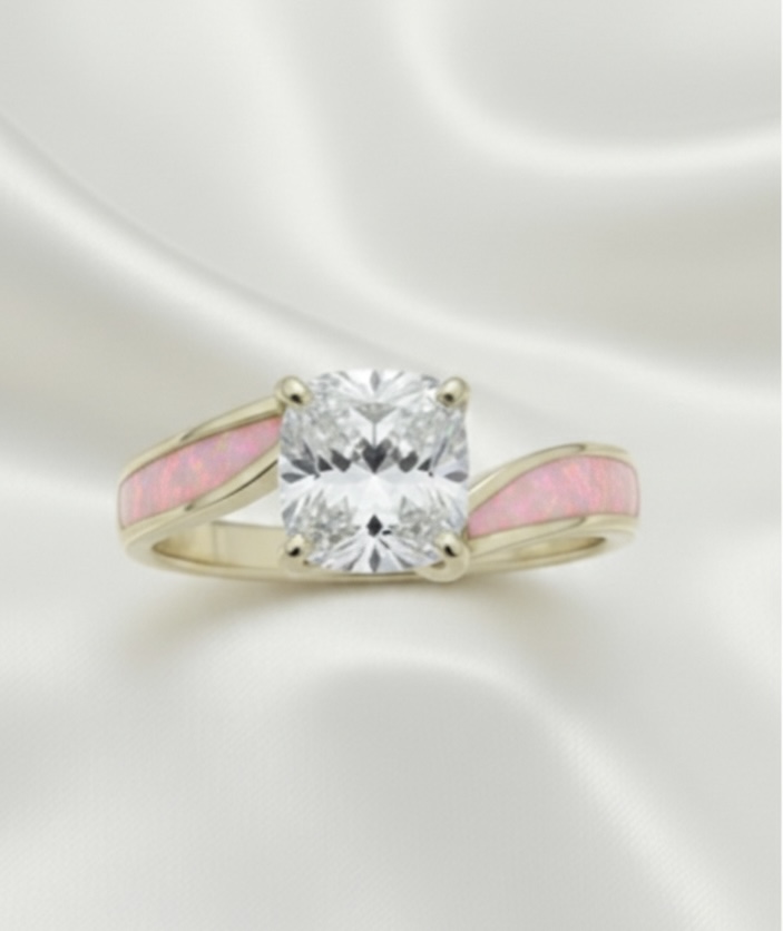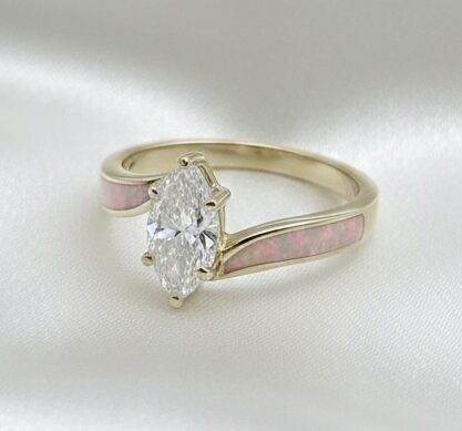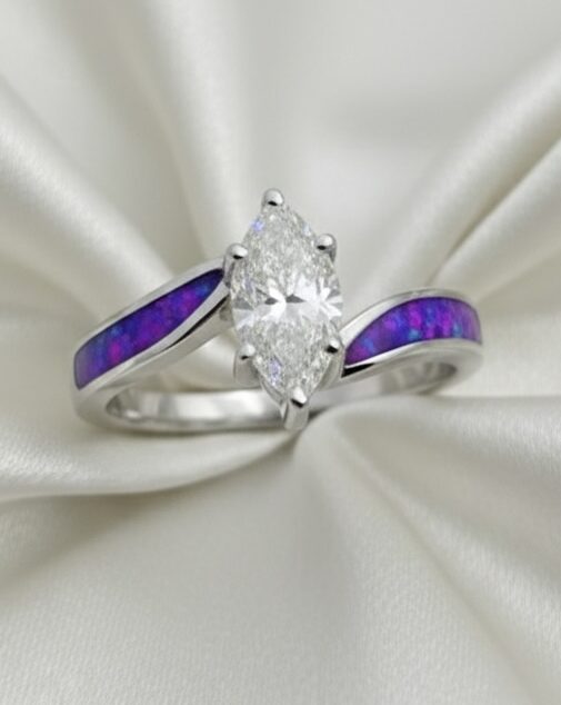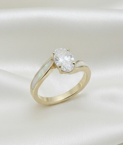 Have your own sentimental jewellery (silver or gold) reinvented into this piece- choosing from a high quality CZ, Moissanite or Diamond. Personalise in your own choice of opal colour.