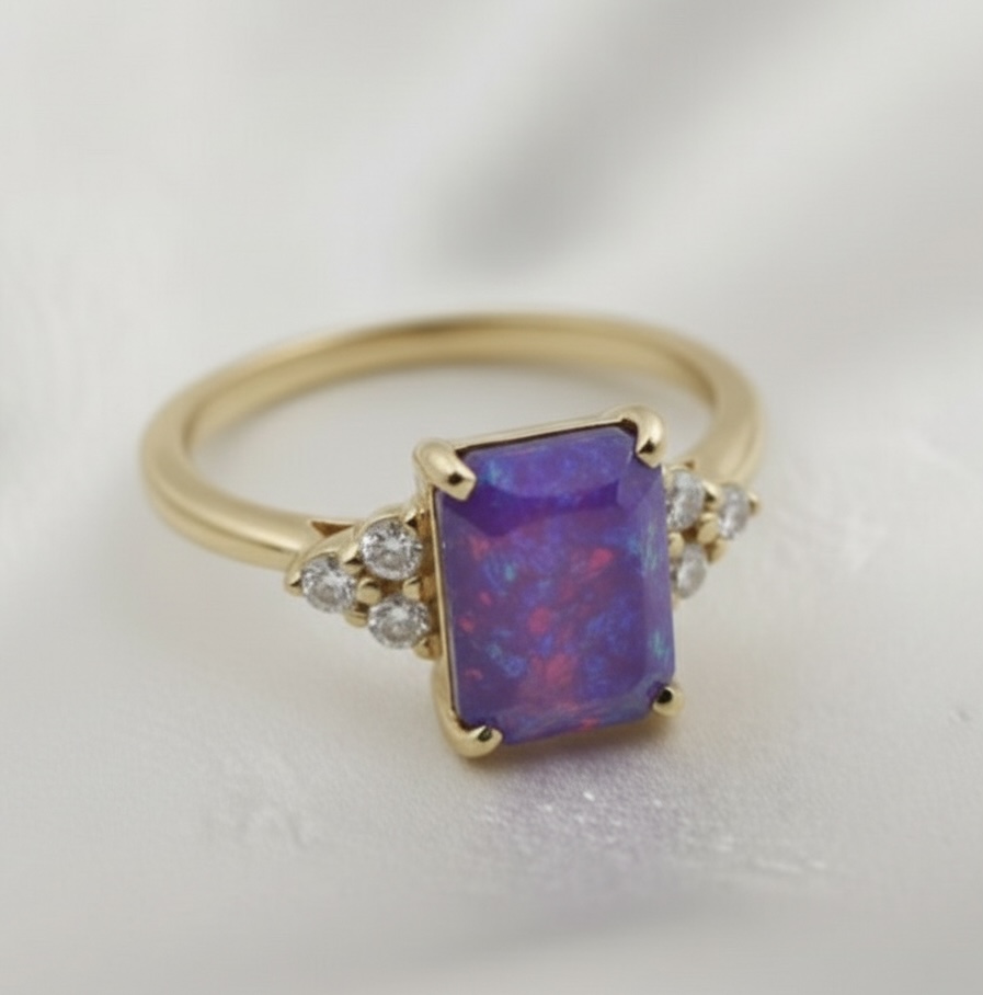 Complete Enquiry Form Quoting Ref L7arrow_forwardLegacy Emerald-Cut Opal Trinity Cluster Ring