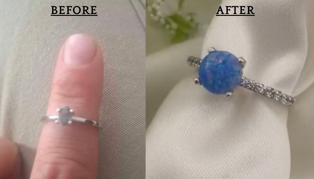 • My customer had a ring that belonged to her grandmother which she had inherited four years ago, but it had never been worn as it was five sizes too small so was hidden away in a drawer. When my customer also sadly lost her mum this year she decided to use the ring and have a new ring made for her mums ashes, creating a connection to them both.