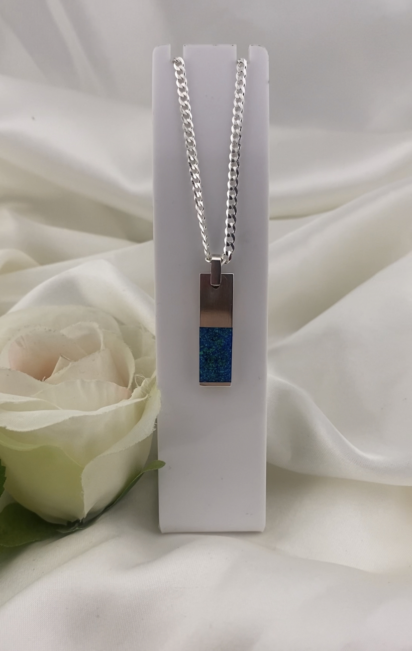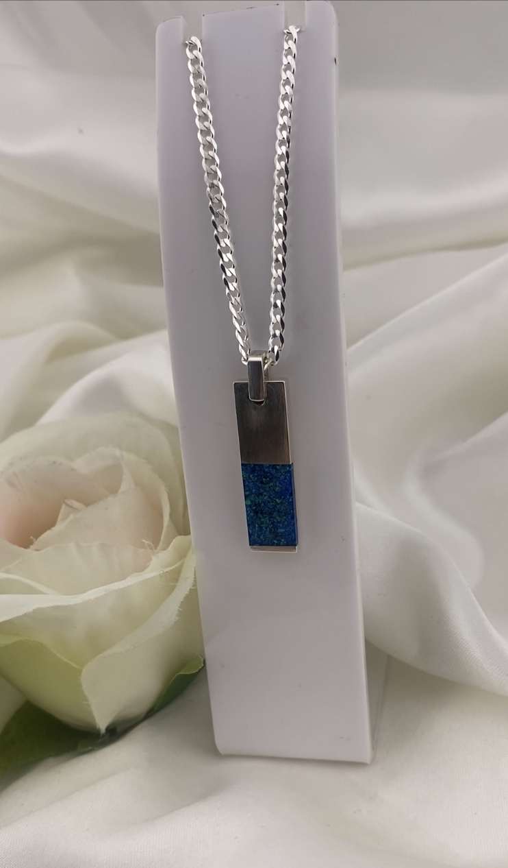 Handmade solid rectangle pendant with coloured opal inlay panel.
