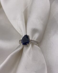 This beautiful semi-precious pave ring is handmade with a top stone that is 8 x 10 mm and available in various colours (see options). Side stones are white.