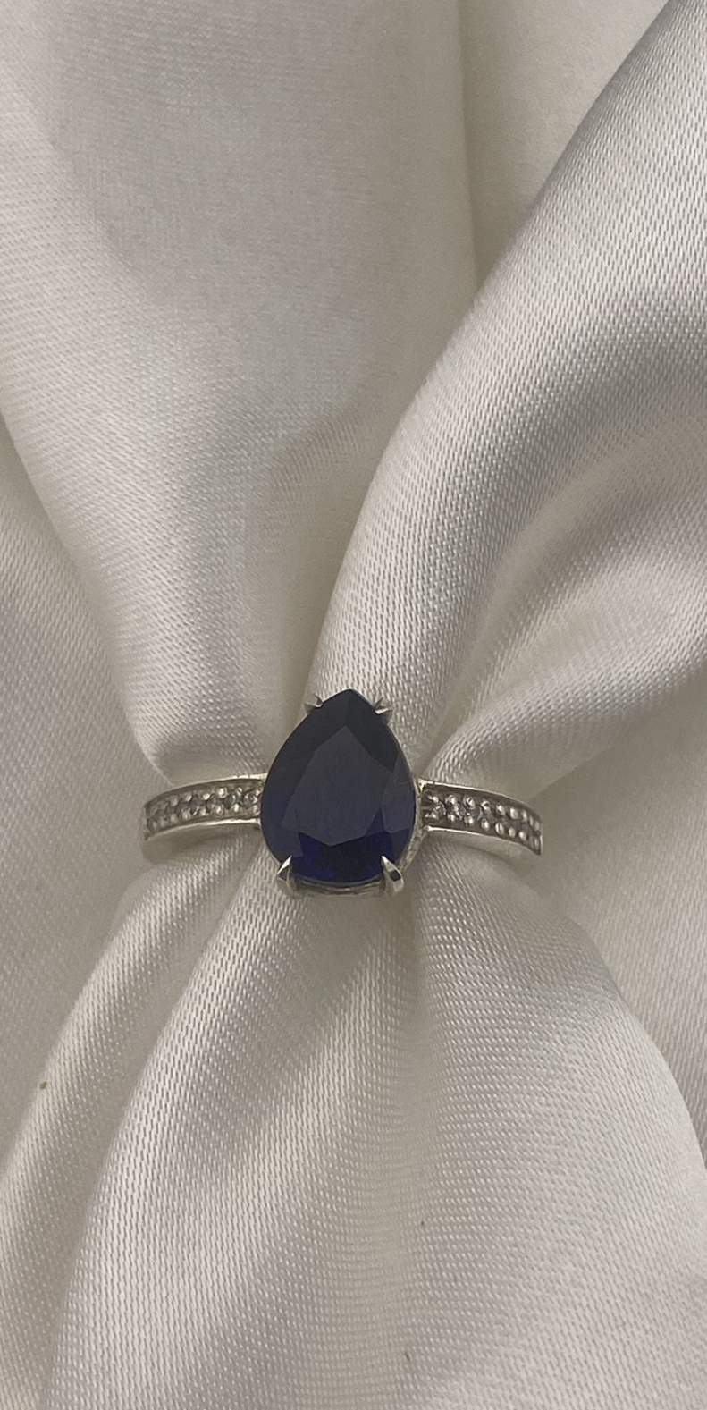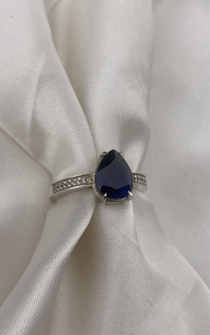 This beautiful semi-precious pave ring is handmade with a top stone that is 8 x 10 mm and available in various colours (see options). Side stones are white.