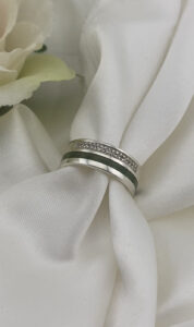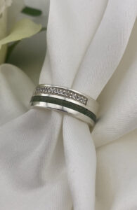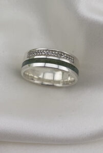 Handmade Flat band with full surround ashes inlay and half surround bright cut semi-precious stones setting.