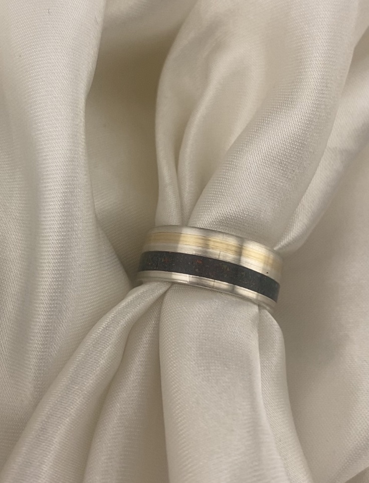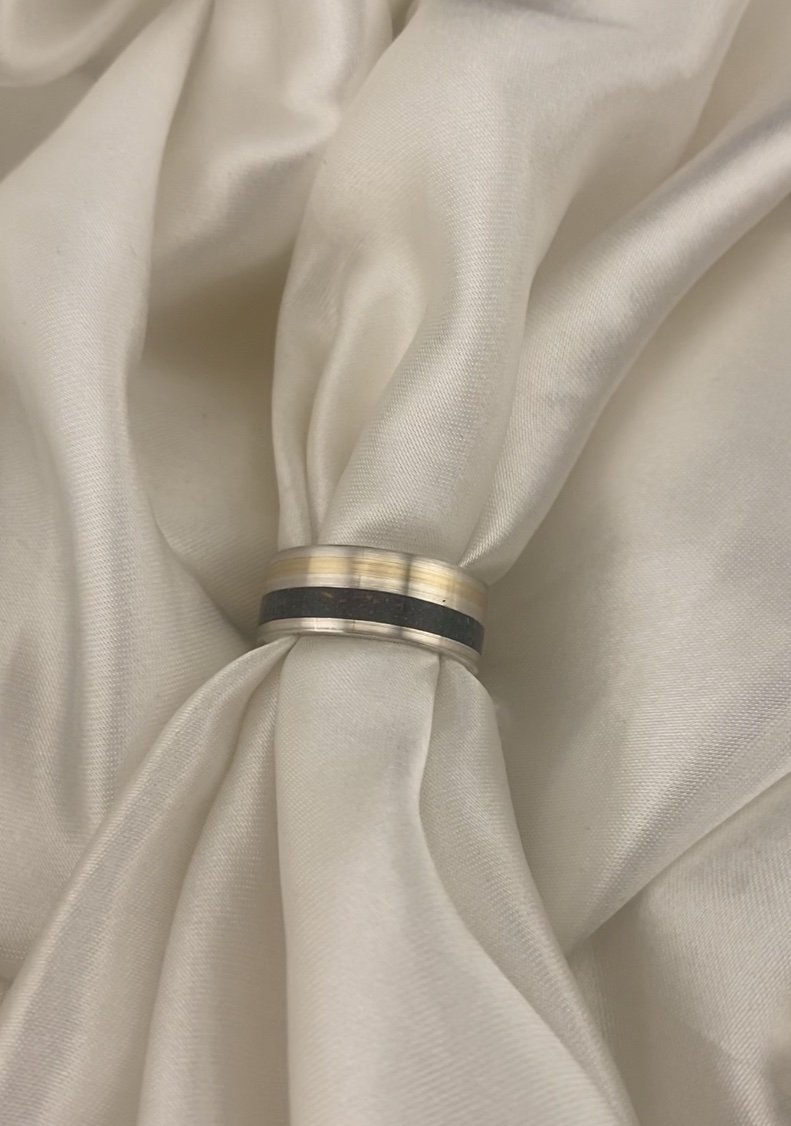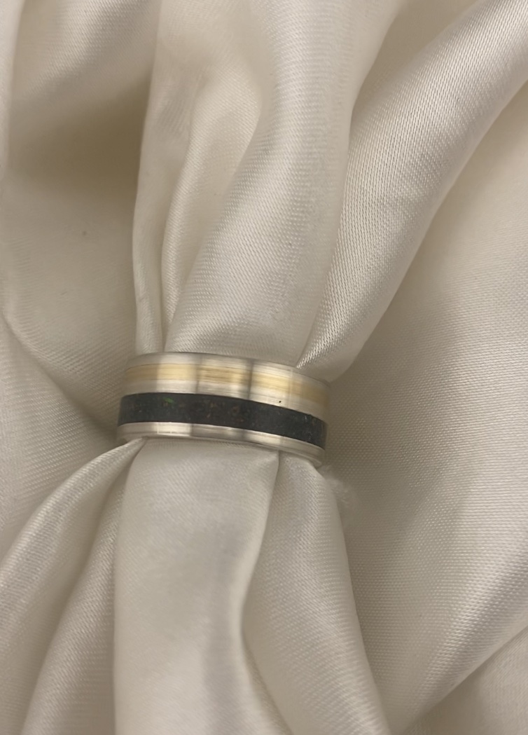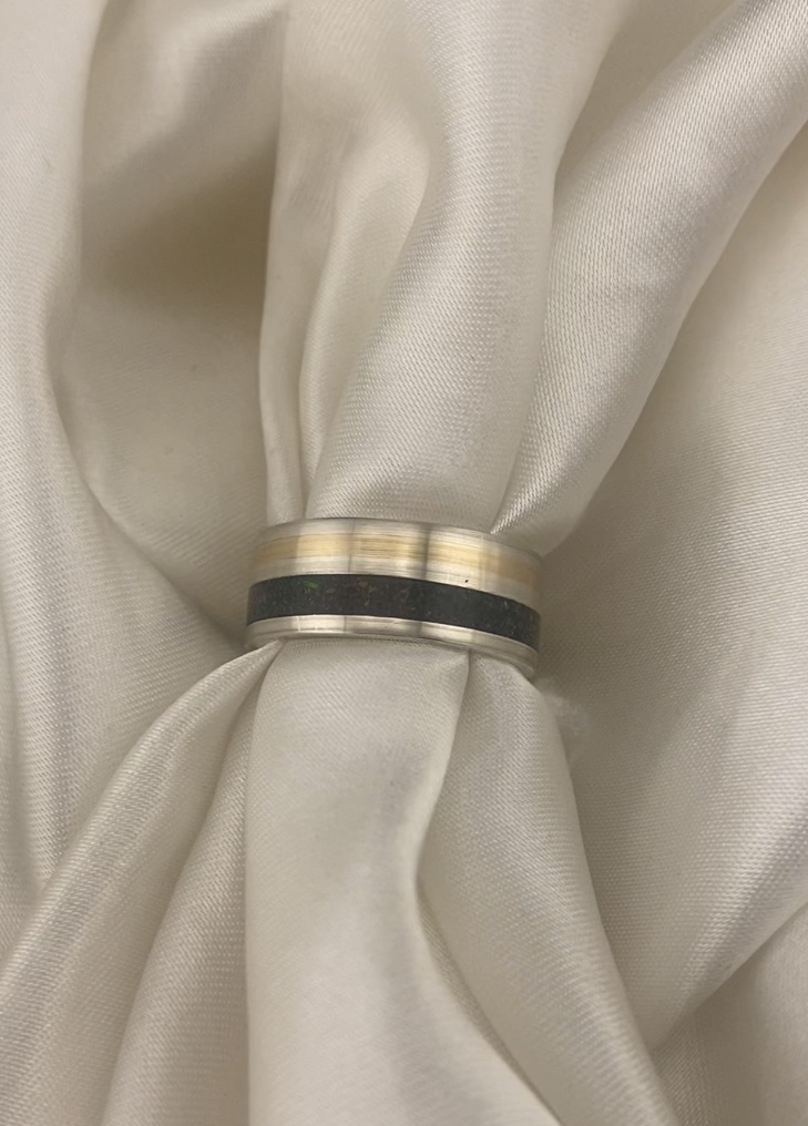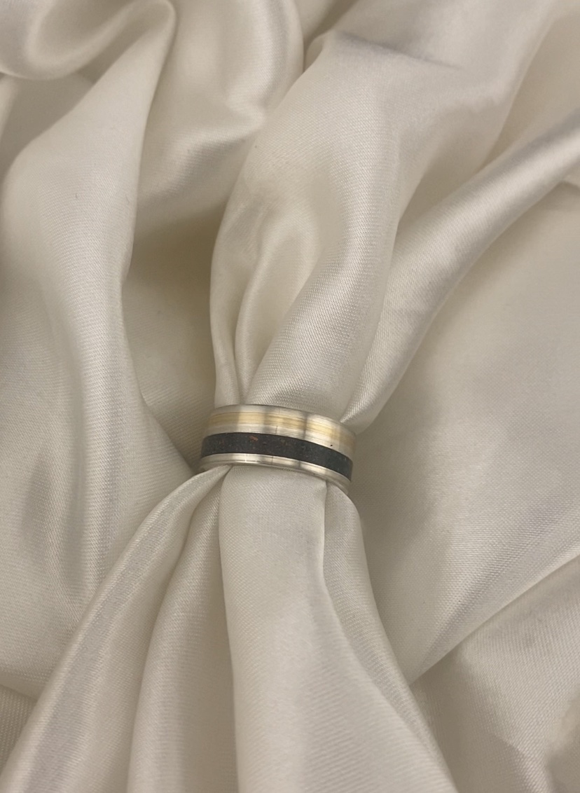 Handmade 8mm flat Sterling Silver 925 band with double inlay.