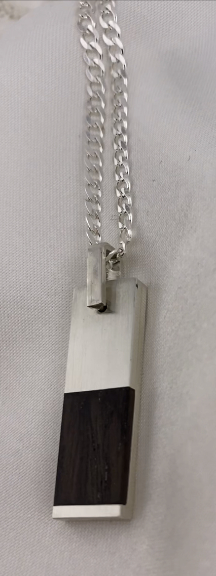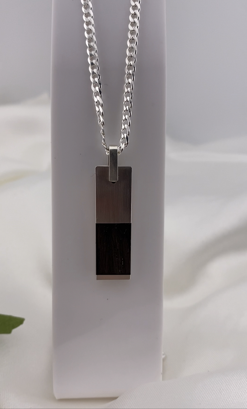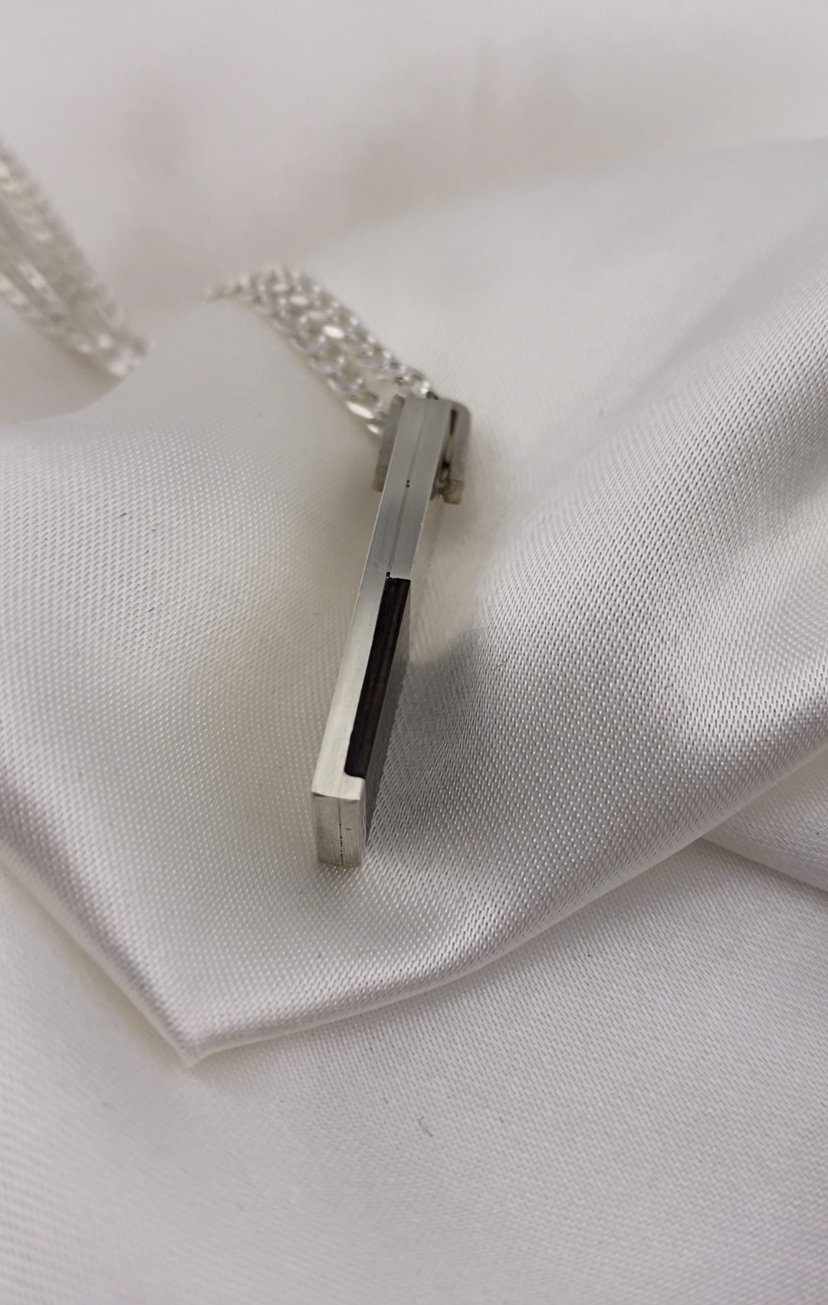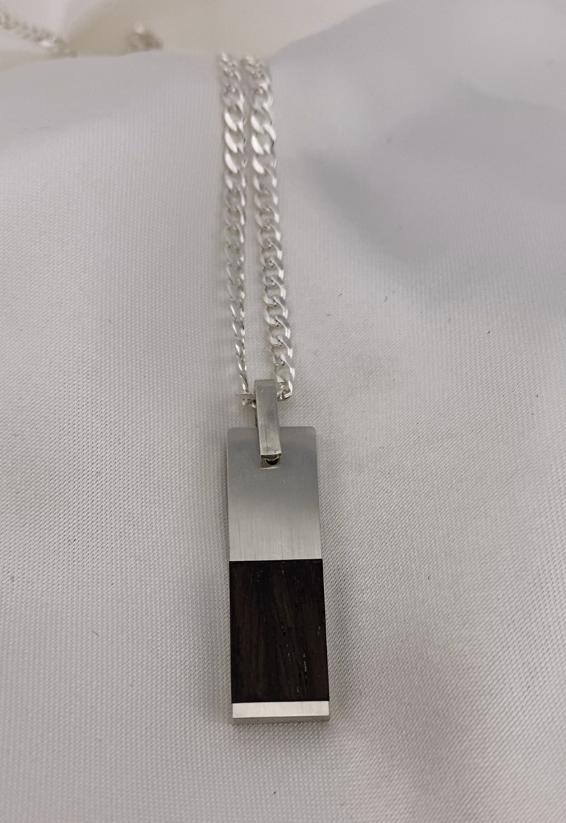 Pendant measures 35mm x 9mm x 3mm (including pinch bail).