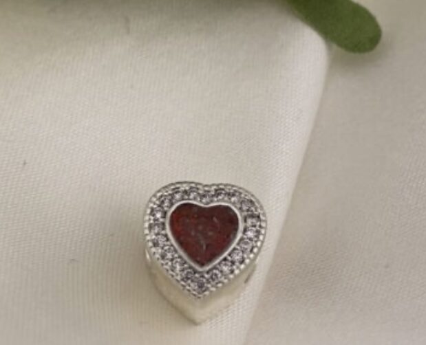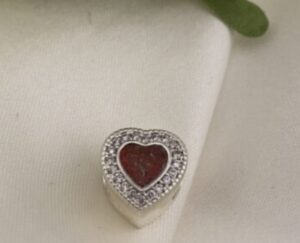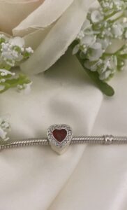 Sterling Silver 925 halo heart charm with ruby opal setting.