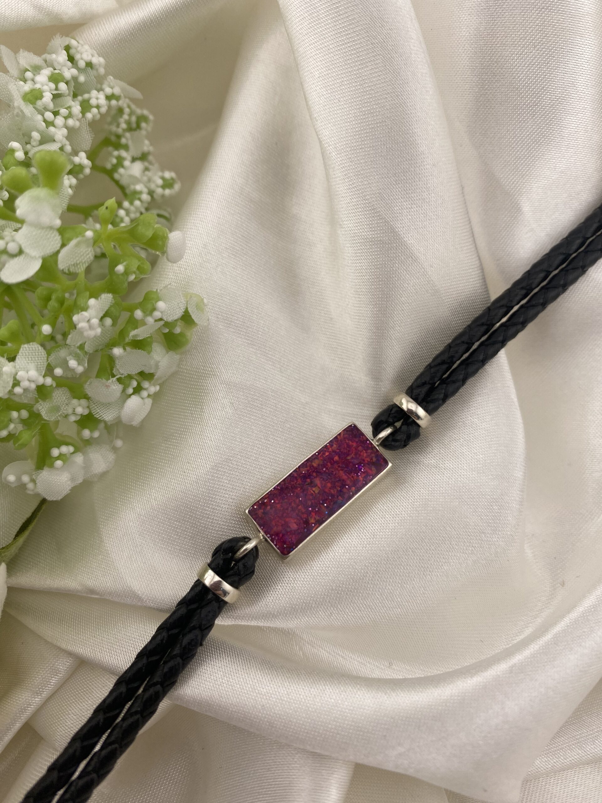 Sterling Silver 925 real leather and pink sapphire opal bracelet.