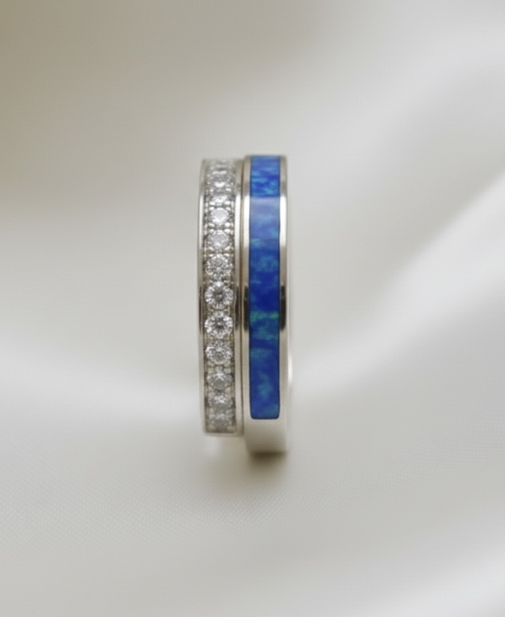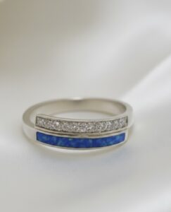 Channel 1- ashes and opal delicately encased with a resin channel. Remembrance setting available in various colours.