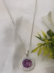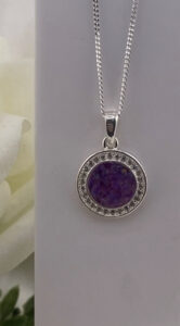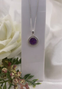 Hand-finished Sterling Silver 925 halo pendant featuring 8mm bezel and full white fine crystal halo surround.