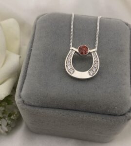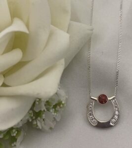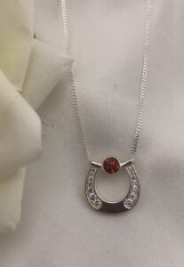 Hand-finished Sterling Silver 925 horseshoe pendant featuring 4mm bezel and white fine accent sides.