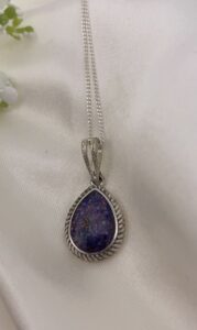 Hand-finished Sterling Silver 925 rope twist pendant featuring 5 x 10mm tear drop bezel.