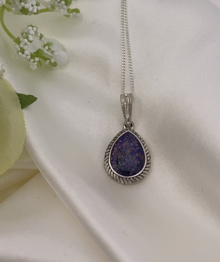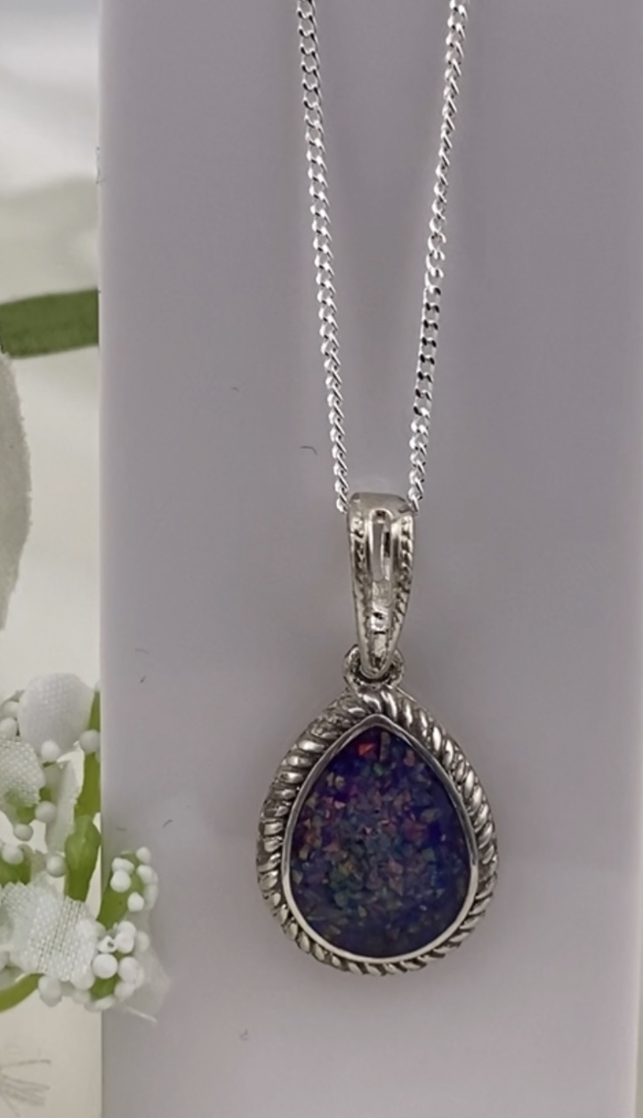 Hand-finished Sterling Silver 925 rope twist pendant featuring 5 x 10mm tear drop bezel.