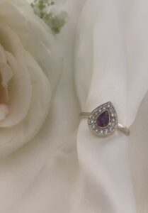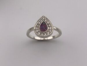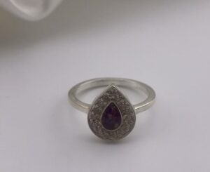 Hand-finished Sterling Silver 925 curved teardrop ring. Features 5 x 7mm bezel and full white fine crystal surround.