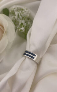 Hand-finished 8mm double channel band. Channel inlays are 7mm in length.