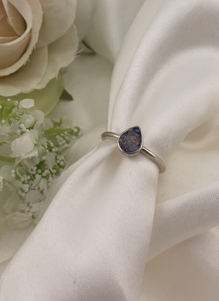 Hand-finished plain tear drop ring featuring 6mm x 5mm bezel.