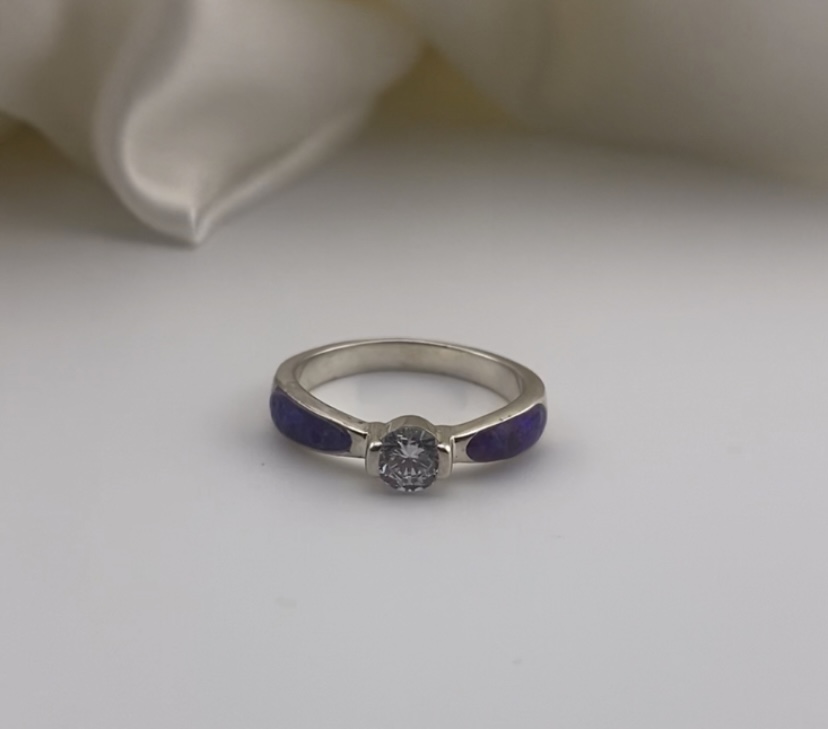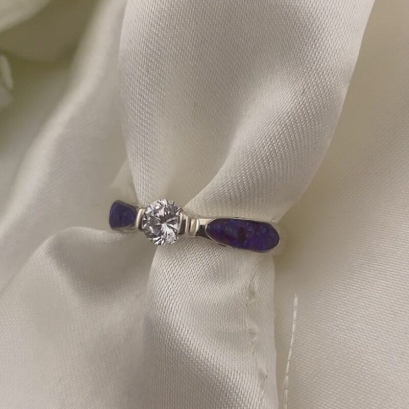 This hand-finished solitaire ring features a fine crystal solitaire stone with shoulder channel setting for ashes and opal setting which is available in various colours.