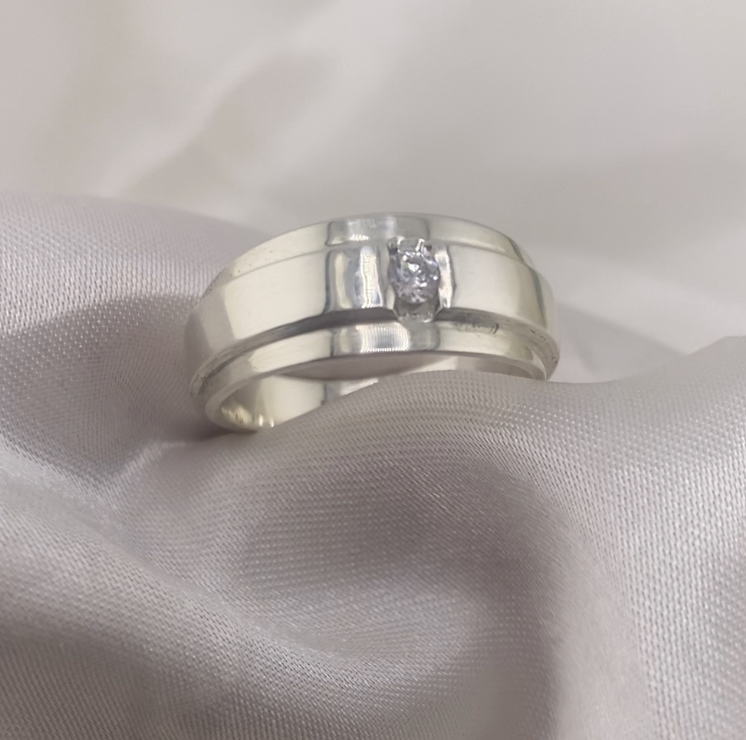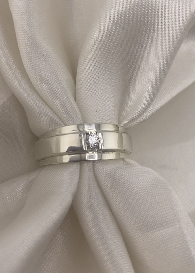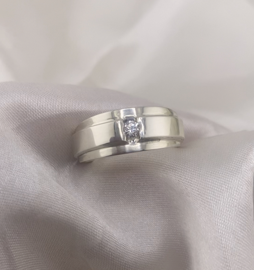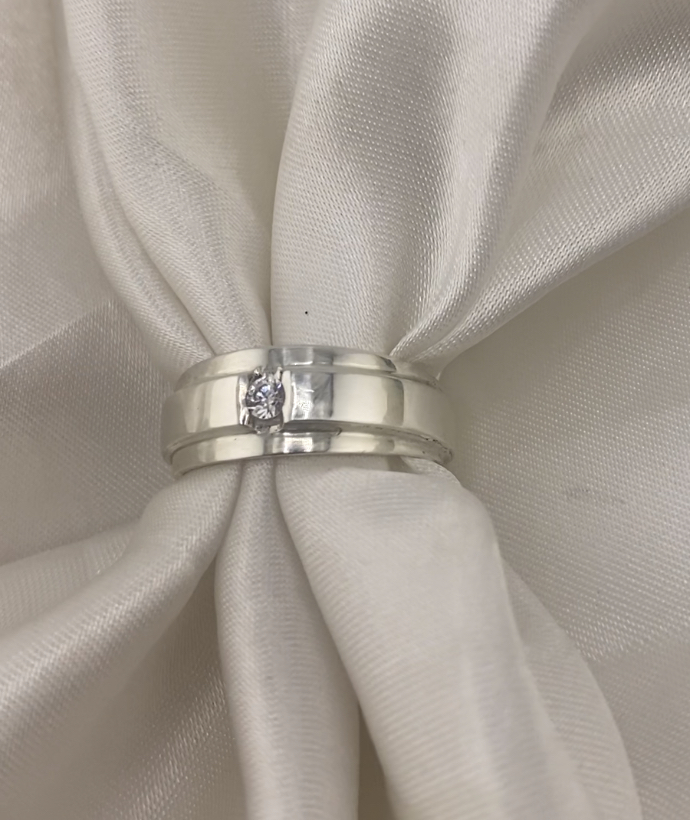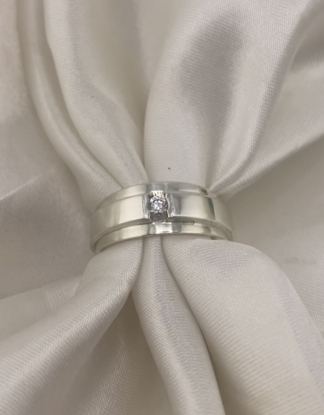 This memorial 8mm band is handmade with a 3mm brilliant cut semi-precious stone and accent shoulders.