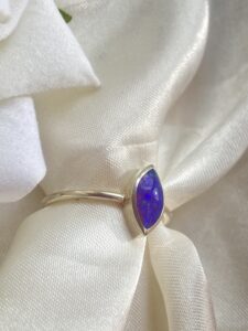 This beautiful ring is handmade from your sentimental silver/gold and features a marquise ashes and opal rub-over fit bezel setting.