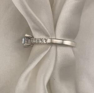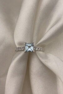 This beautiful semi-precious ring is handmade with a Princess square cut top stone and paved sides and is handmade from your sentimental silver/gold.